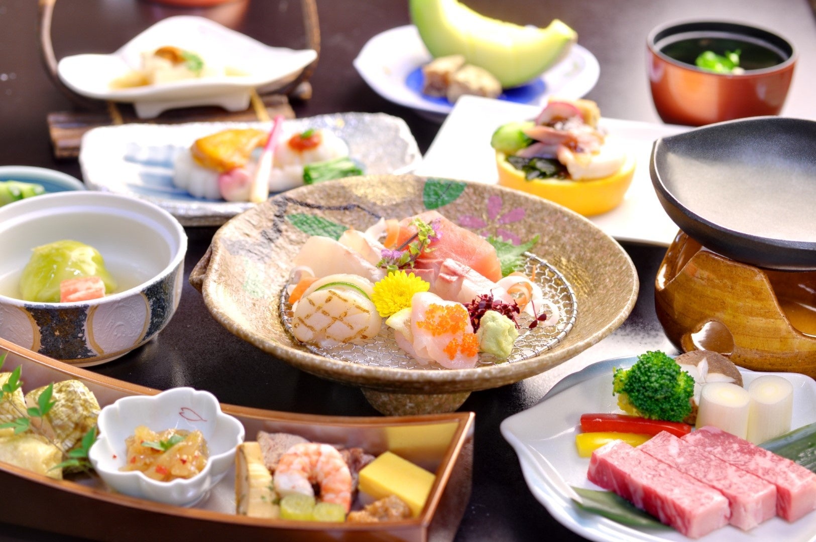 個室の和食ダイニングで、和牛と旬の魚を楽しめる特選和牛会席をご用意致します。