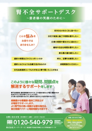 「腎不全サポートデスク」(無料コールセンター)を開設している、株式会社スーパーナース(本社:東京都千代田区、代表取締役:石塚雅洋)は、在宅血液透析サポートが1ヵ月間50%OFF!キャンペーンを実施します。