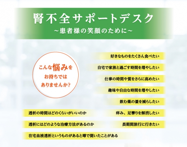 腎不全サポートデスク キャンペーン実施中!簡単なアンケートに答えるだけで、在宅血液透析サポートが1ヵ月間50%OFF!