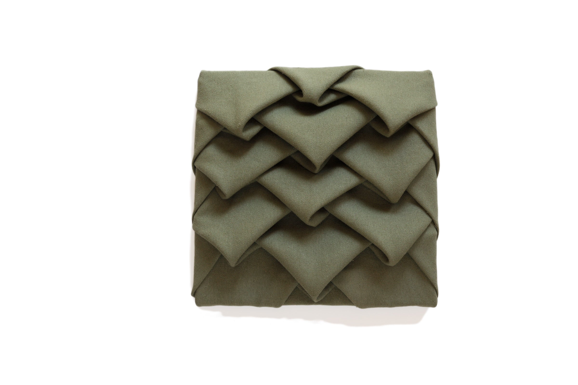 青々と茂ったツタの葉を想起させる表情は、一枚の布からできています。オールハンドメイドで作られ、植物の葉のように1点ずつ微妙に表情が異なります。
