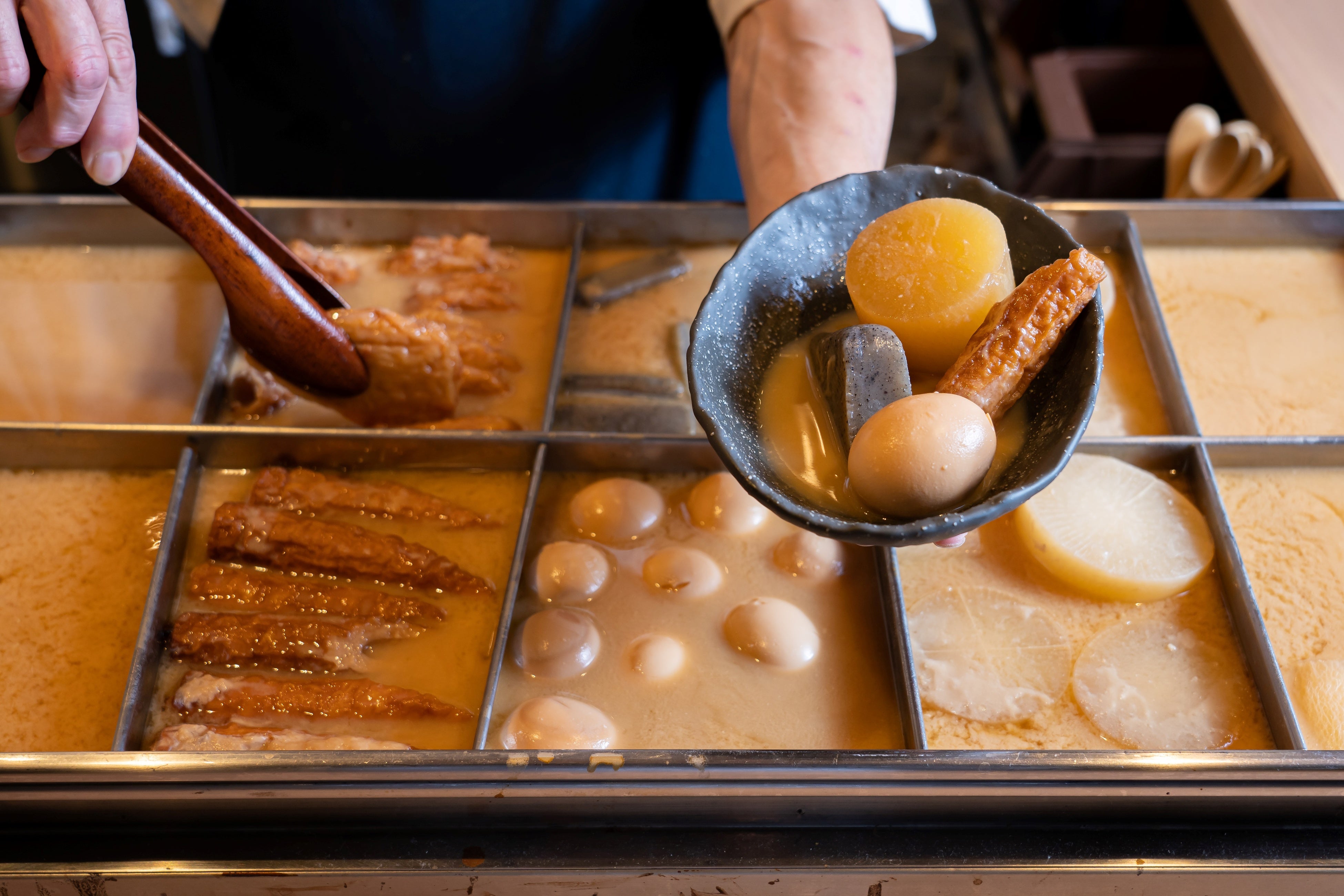 鰹節、そうだ節など5種の出汁と酒粕を合わせた特製酒粕おでん