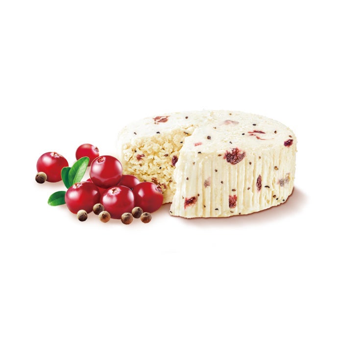 ブルサンチーズの濃厚さはそのままに、甘酸っぱいクランベリーの味わいとピリッとするペッパーがアクセントに。濃厚なフレーバーが特長のブルサンチーズのイメージを裏切らない、クセになるスイートフレーバーチーズです。