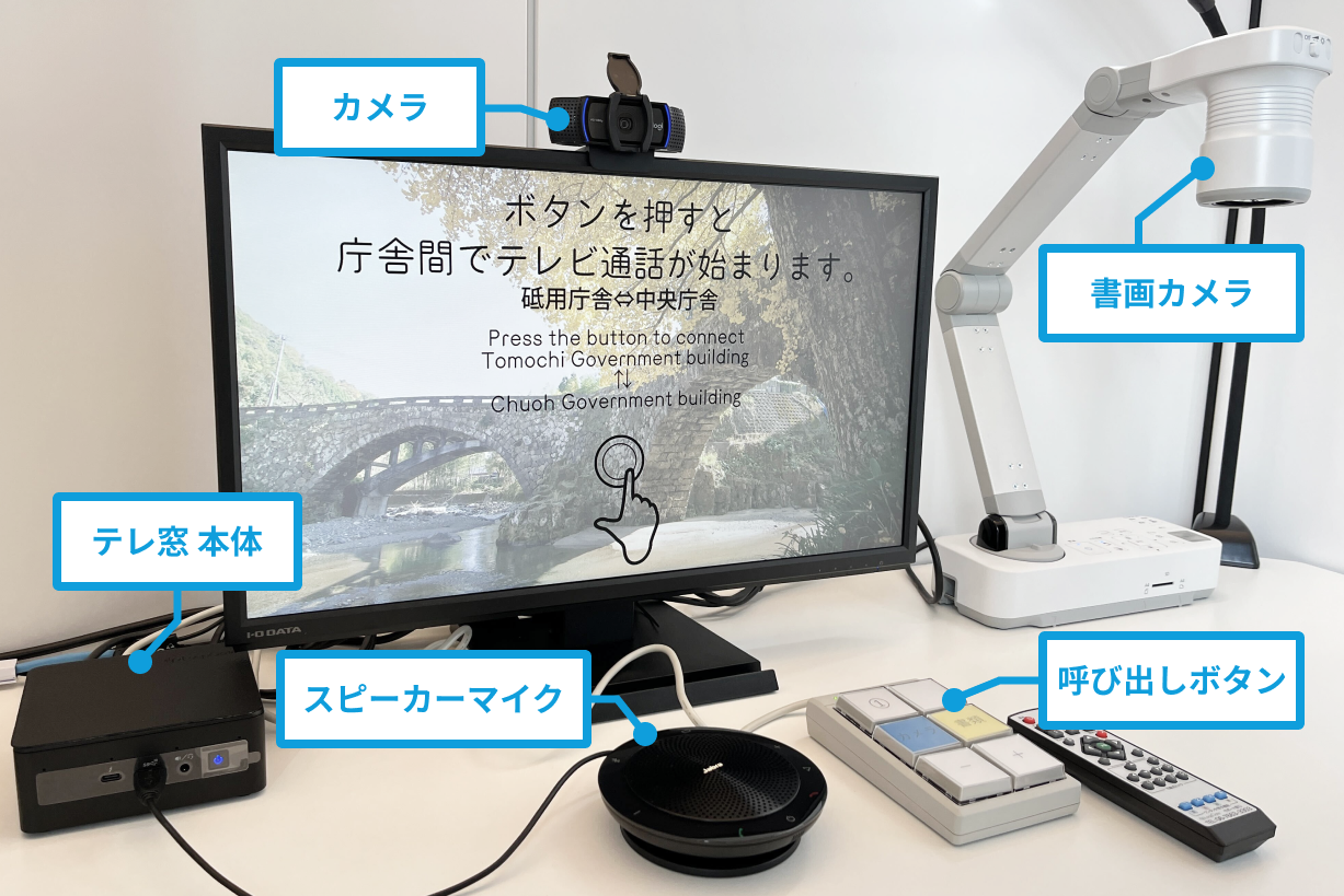 テレビ窓口システムの呼び出しボタンを押すとビデオ通話により職員とつながます。