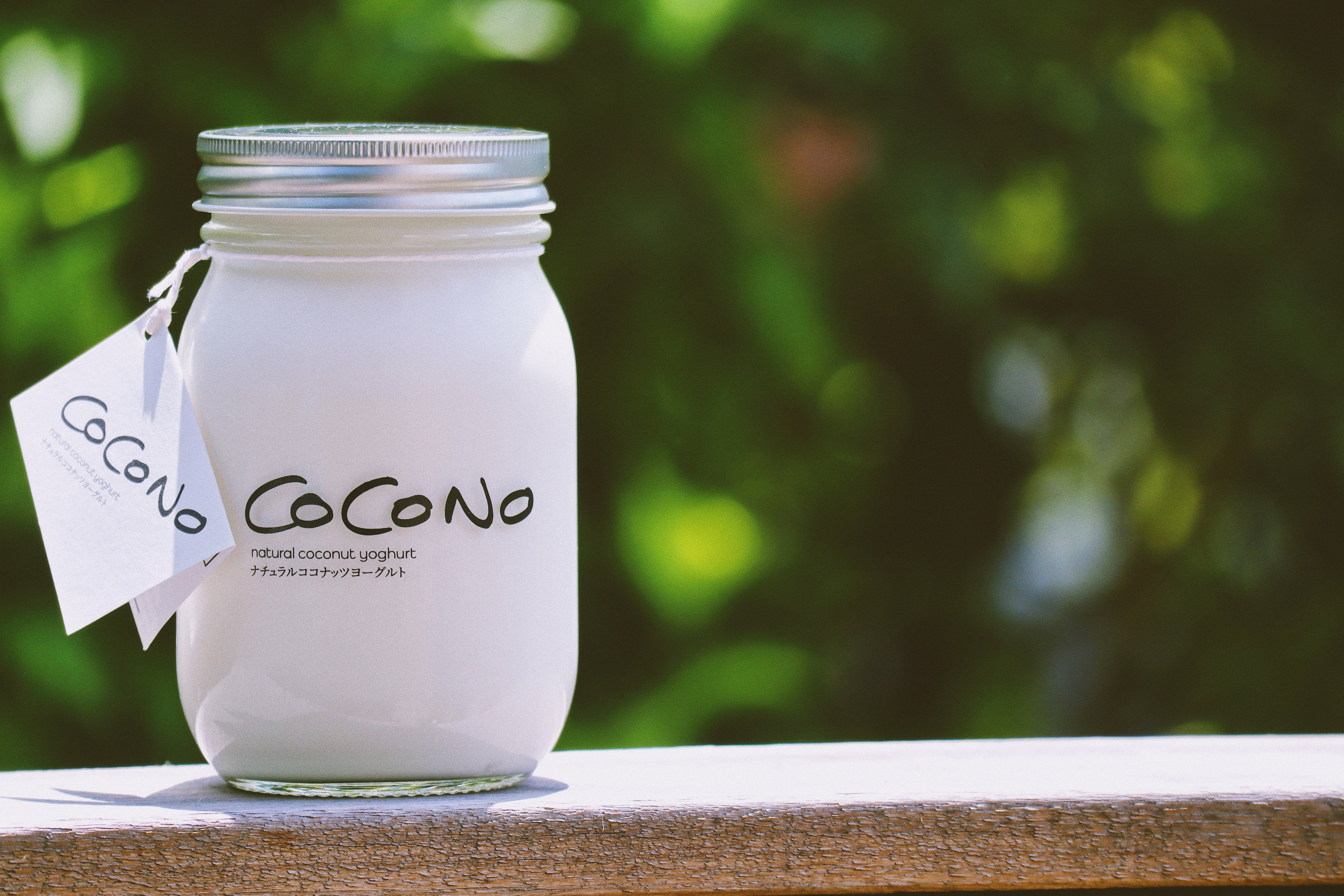 からだと地球に優しいココナッツヨーグルト。COCONOのナチュラルヨーグルトに使われている素材は、ココナッツミルク・ヴィーガンプロバイオティクス(乳酸菌)・寒天・こんにゃく粉の4つのみ。