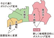今まで毎月2回、平塚・大磯・ニ宮エリアで10万部をポスティング配布してまいりました。