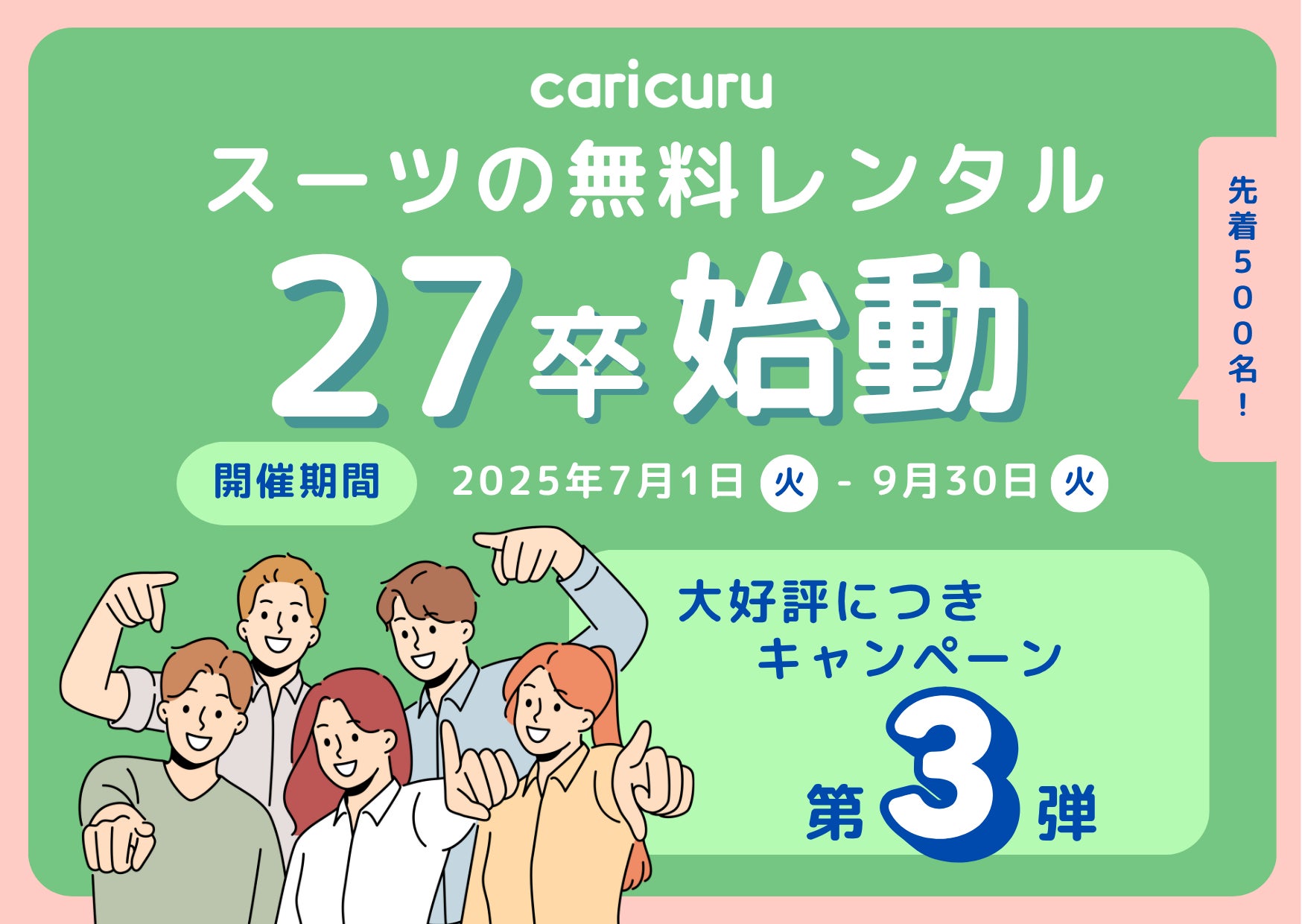 【27卒解禁】リクルートスーツ無料レンタルサービス「カリクル」、好評につきキャンペーン第3弾を開始
