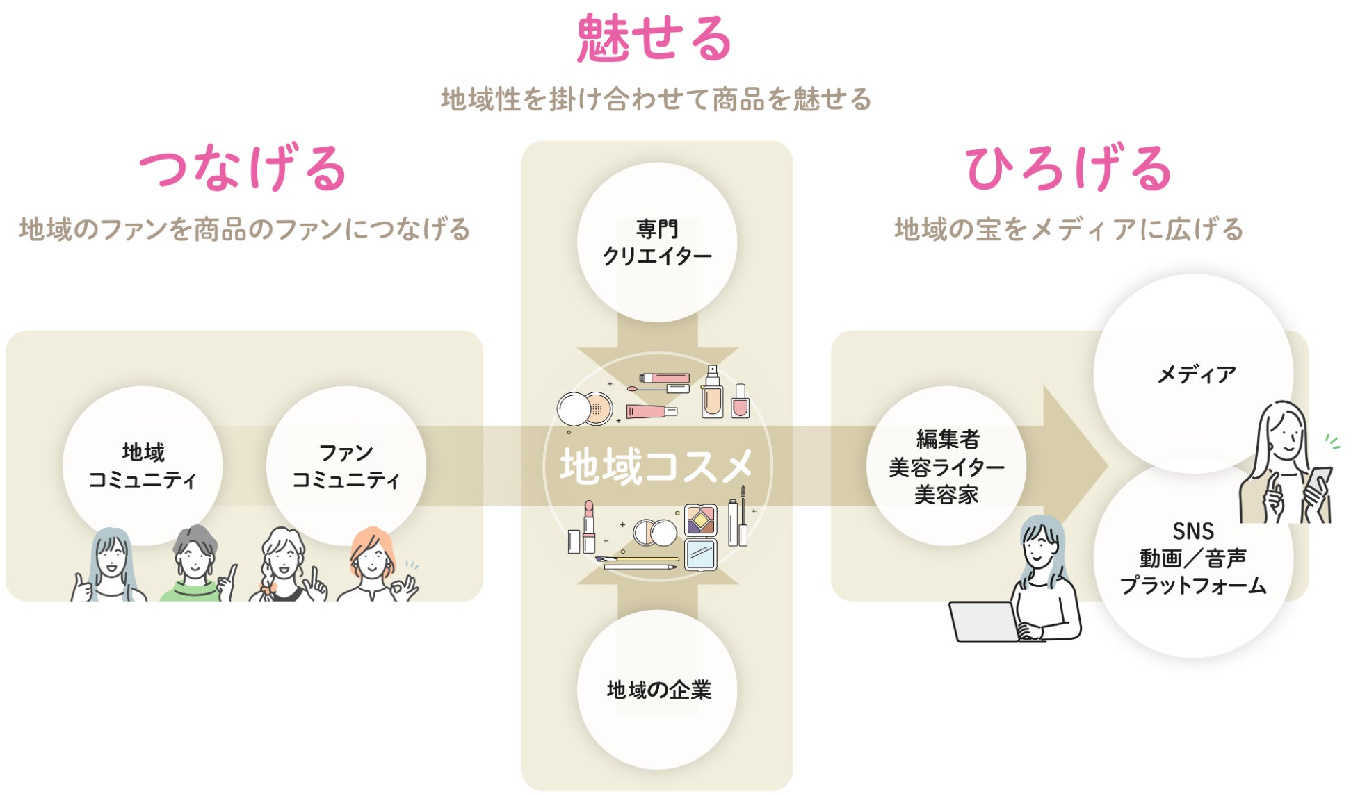 今回、第一弾として「日本の美容を輝かせる」をテーマに掲げ、特に、地域の魅力が詰まったコスメブランドのPR支援をします。どのような歴史のある土地で、どのような想いから生まれ、どのように真摯に商品が作られているのか。その価値を伝えるためには、個々の地域コスメブランドに寄り添い、その個性を「愛があるPR」で輝かせる必要があると考えました。