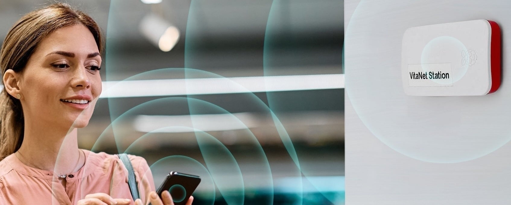 多数の認証処理が不要なドローンでの荷物受け取り人認証などの用途では、VitaNet Stationだけのオプションも用意がございます。重量と消費電力を半分以下に削減します。通常はVitaNet Stationの認証レンジを0~10mの範囲で設定しますが、ホテルのロビーなどの広いスペースのどこでも認証ができる多数のVitaNet Stationのクラスタリング設置や2台並列稼働の冗長構成など多様な設置構成が可能です。
