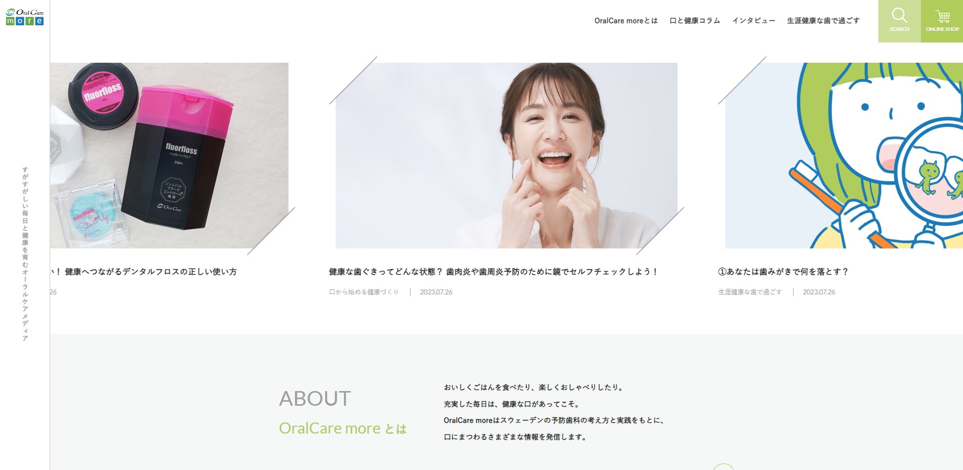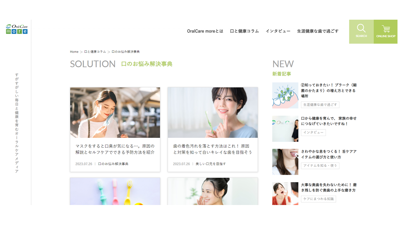 『OralCare more』は、いつでもどこでも、お口の健康と予防についての情報を得られるサイトです。