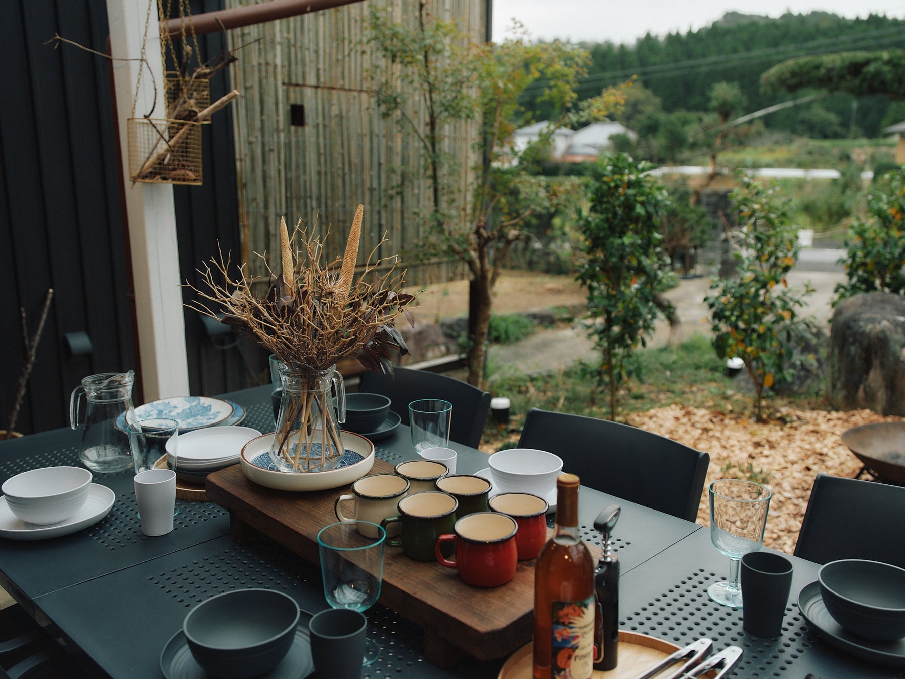 キッチンから続くテラスではBBQを楽しめるグランピング用品を完備しています。