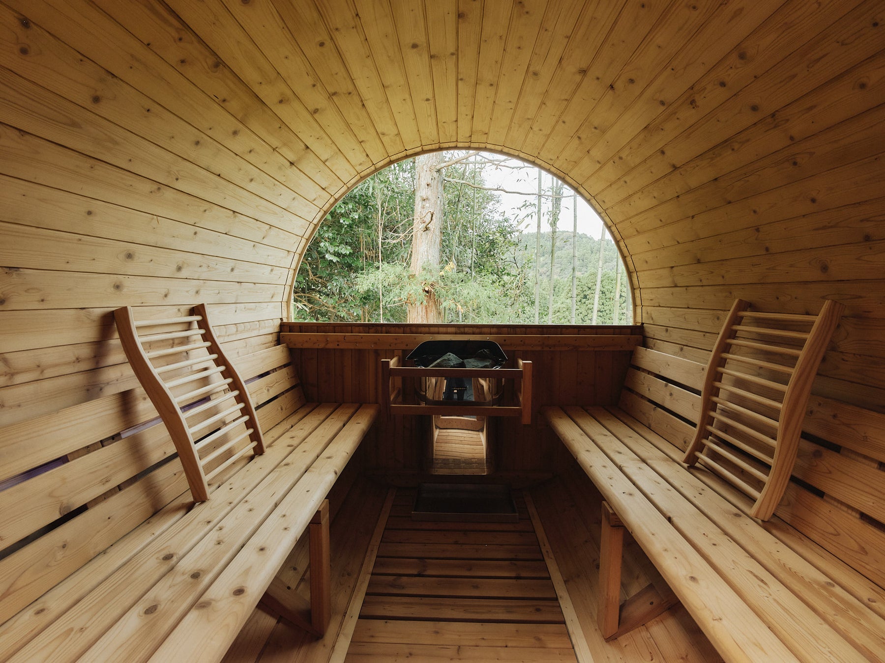 宿のコンセプトは水。宿のふもとには川が流れ、サウナや浴室からは川の流れる音を聞きながらくつろぐことが可能です。
