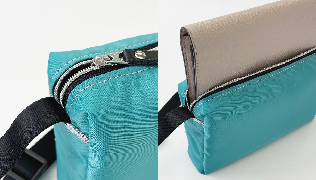 中に入れたものが一目でわかる横長・浅型、端から端まで大きく開き、開閉しやすいファスナー、肩に負担がかかりにくいショルダーストラップなど、使いやすさを徹底的に追及し、毎日手に取りたくなるようなデザインにしました。