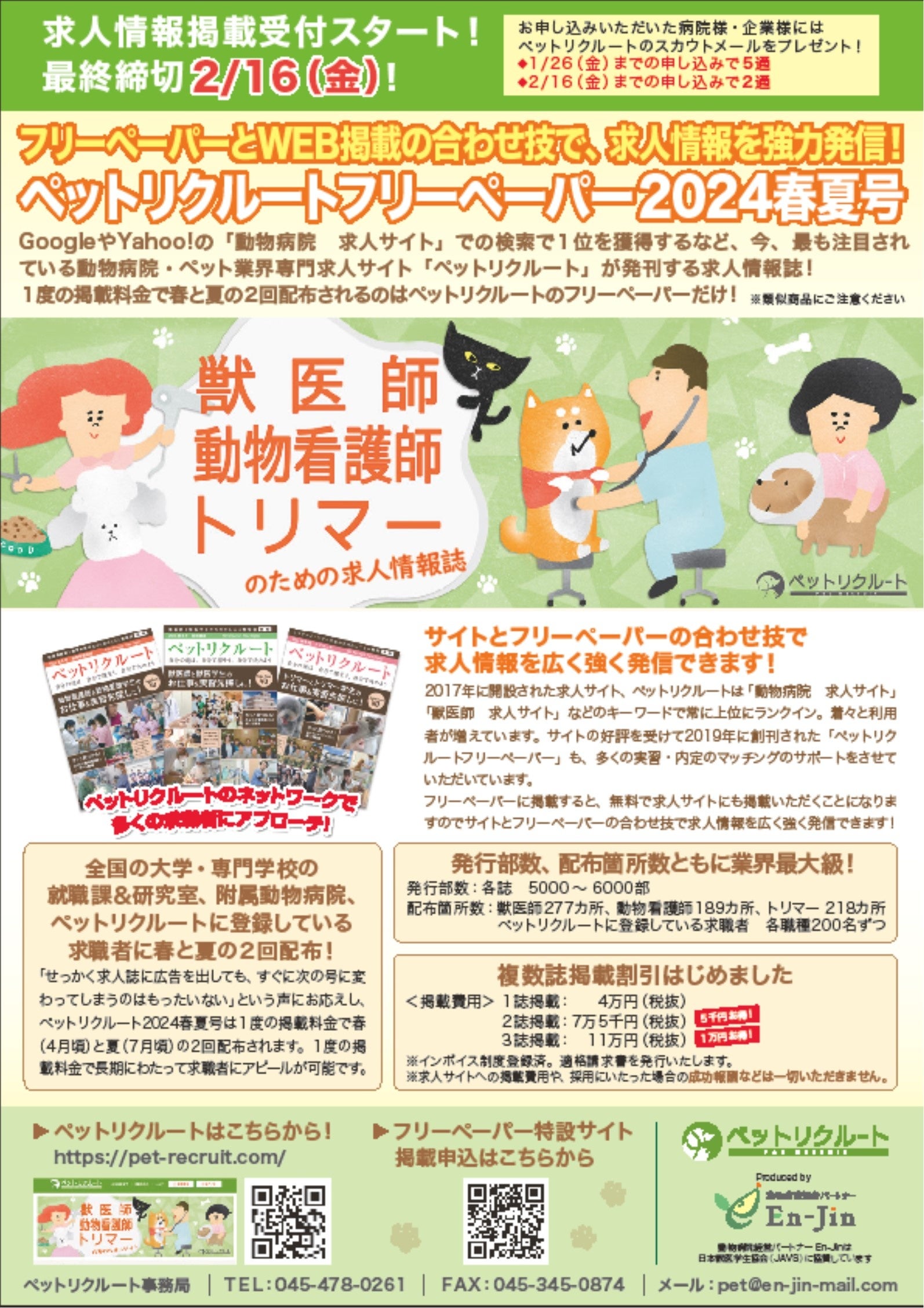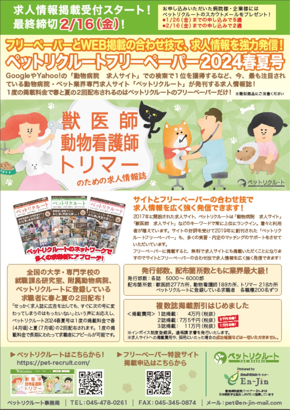 動物病院・ペット業界専門求人誌「ペットリクルートフリーペーパー2024春夏号」発刊!