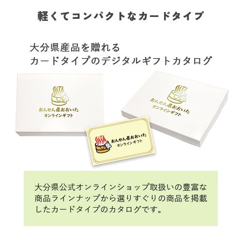 「おんせん県おおいたオンラインギフト」のギフトカードは専用ボックスに入れて販売する。