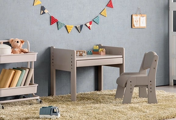 そして、同時リリースした商品は、高さ調節可能なキッズデスク&チェアセットです。