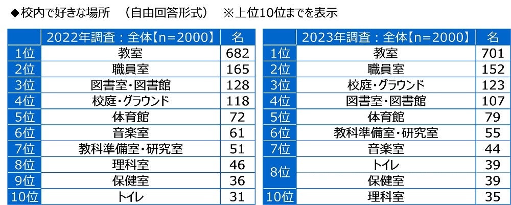 前回の調査結果と比較すると、「教室」は2年連続1位でした。