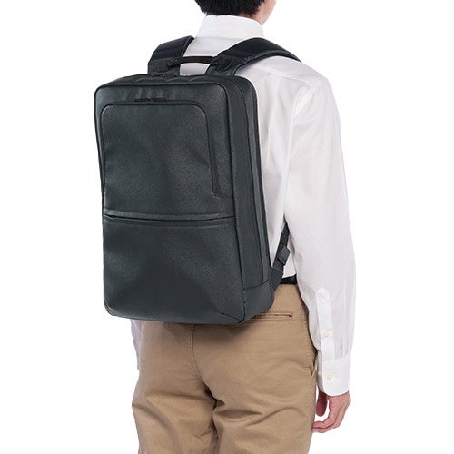 外装にはポリウレタンコーティングを施したコーデュラポリエステル製の生地を使用。サフィアーノレザー調の高級感がある生地は、軽量で軽やかな使い心地。撥水性があるので、急な雨にも対応します。