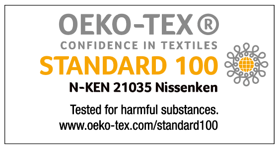 従来製品では取得できていなかったエコテックス®️スタンダード100の製品クラスIを取得。『エコテックス®️』は、製品の安全性を厳しくチェックする国際認証です。その中の一つであるエコテックス®️スタンダード100は、350を超える有害物質が対象となる分析試験をクリアした繊維製品のみ取得することができ、世界トップレベルの安全な繊維製品の証として世界100カ国以上で取引や商品の購入の際の大切な指標となっています。