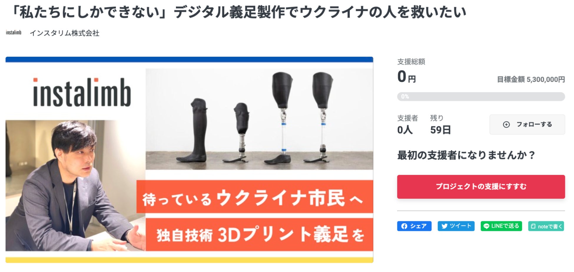 3Dプリント義足のインスタリム、ウクライナ紛争被害者に義足を届けるためのクラウドファンディングを開始