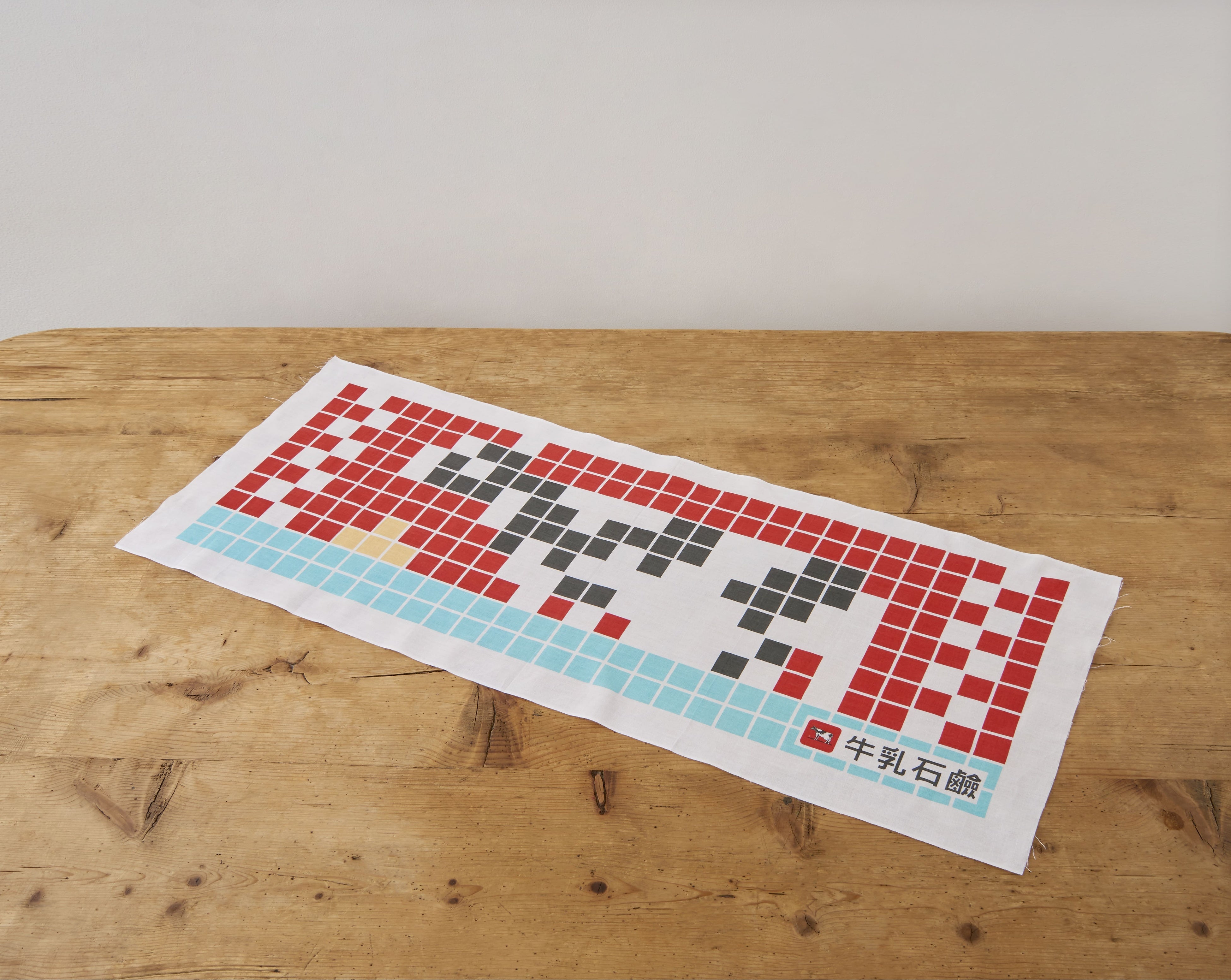オリジナル手ぬぐいは、京都精華大学の学生・大井勇星さんが考案。銭湯のタイルをモチーフに、赤箱のシンボルである牛を描いた赤箱 AWA-YAオリジナルのデザインとなっています。引換券をもって対象銭湯へ行き、ぜひ「赤箱 AWA-YAオリジナル手ぬぐい」を手に入れてください。