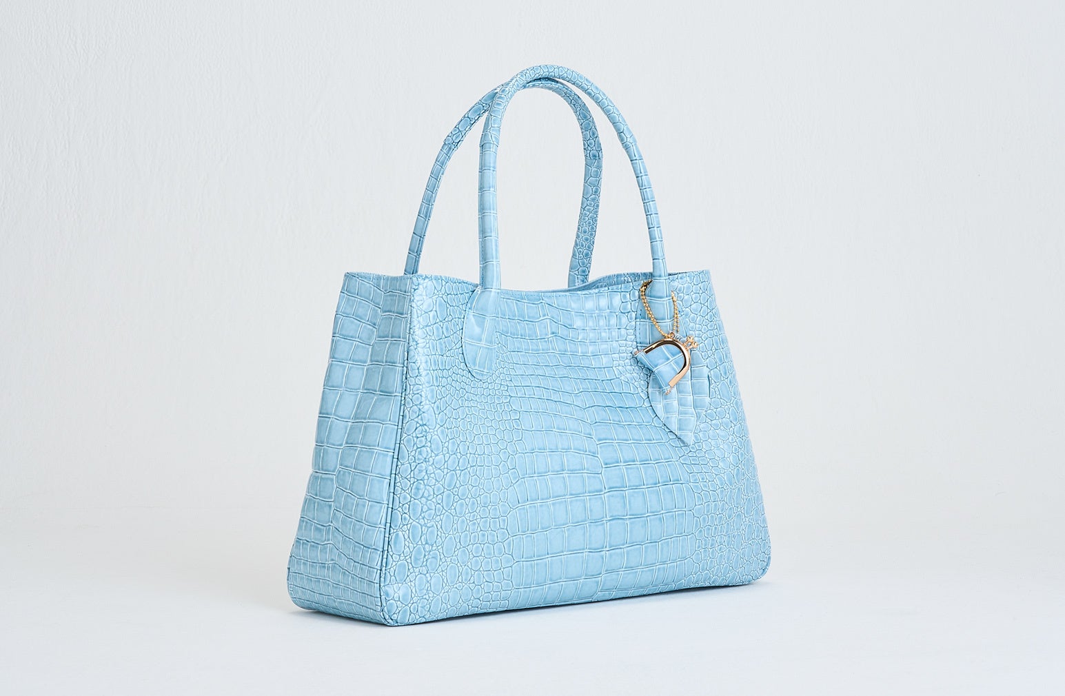 宝石の様な輝きとハリのある質感が最上の風合いを醸し出す「シャイニングエナメルレザー」を使用し、熟練の職人技を活かした涼やかなアイスグレーが長年愛される定番アイテムに新たな魅力をもたらします。