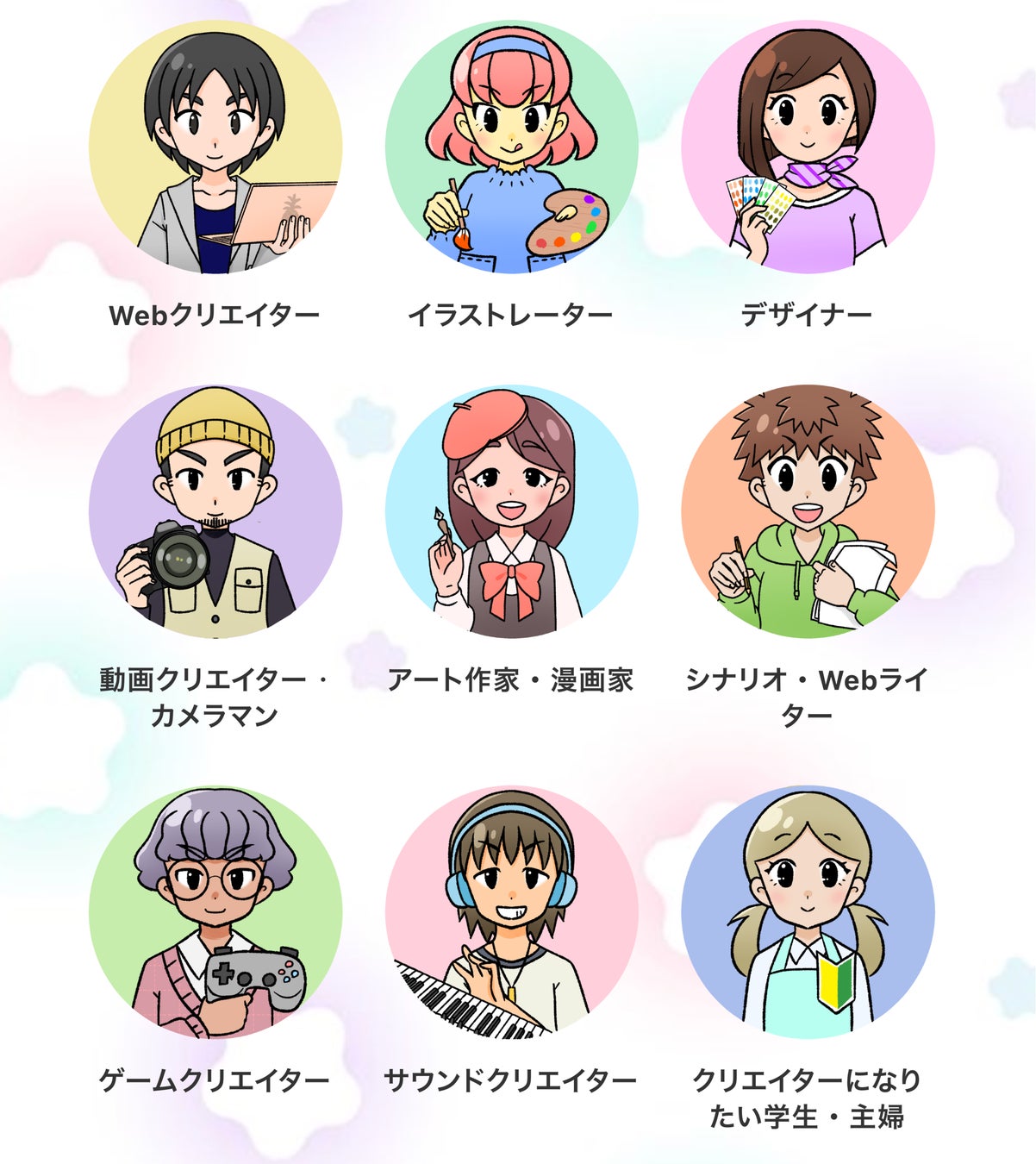 クリエイター祭りはWebクリエイター、イラストレーター、デザイナー、動画クリエイター、カメラマン、ライター、作家、漫画家、サウンドクリエイター、ゲームクリエイター、主婦・学生など様々な職業・年齢の人が一堂に会するクリエイターごちゃまぜ交流イベントです。スキルやキャリアを問わず誰もが楽しめる交流イベントで、「初めて参加した交流会がクリエイター祭りでした」と言われることを目指しています。