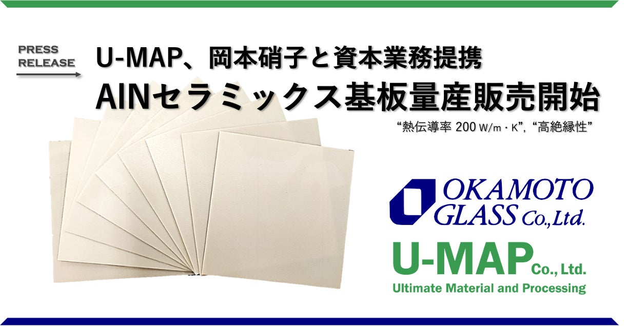 放熱素材スタートアップU-MAPと岡本硝子が資本業務提携、AlNセラミックス基板の量産体制を構築し製品展開を開始