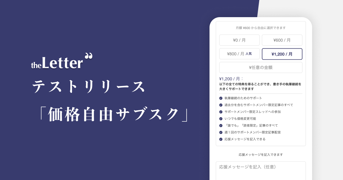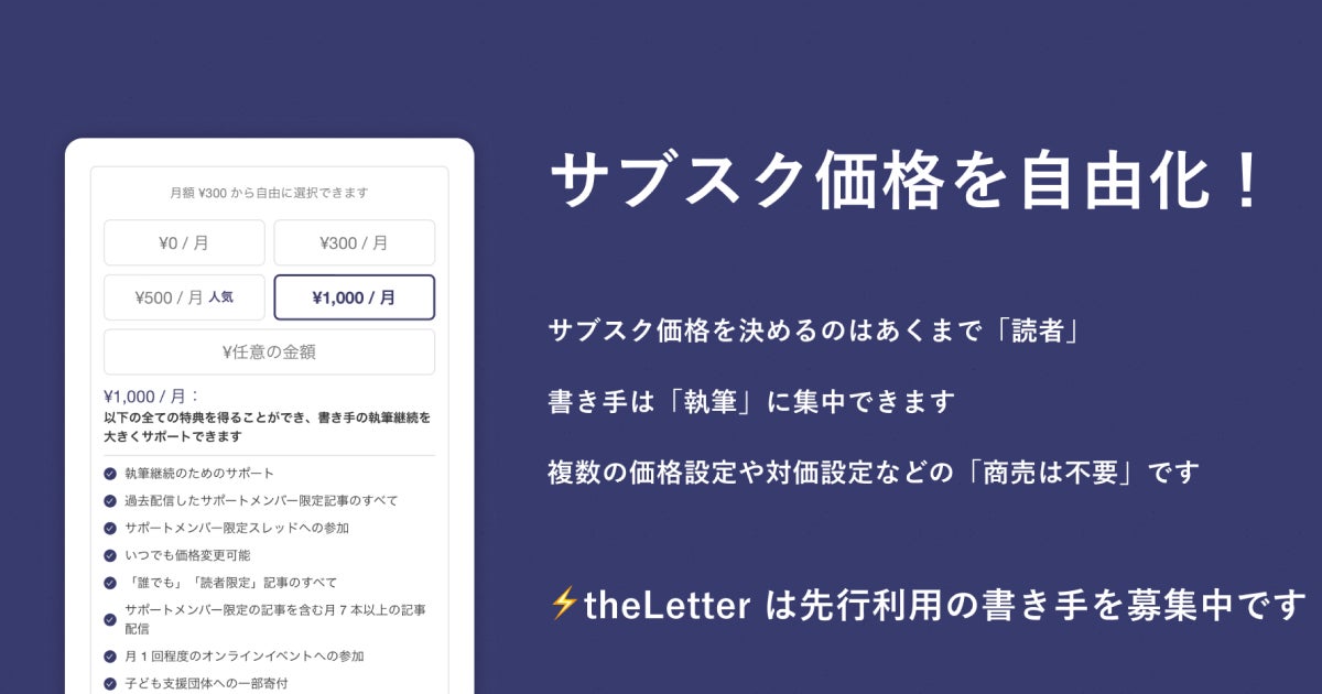 theLetter の価格自由サブスクは、メディアの定価ではない新たなサブスクの形を提案します。