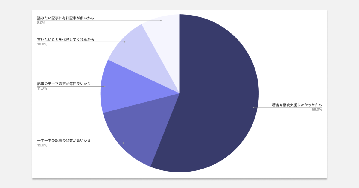 以下は theLetter の月額を支払うサブスク読者ユーザーにお答えいただいた「課金理由」に関するアンケート結果です。
