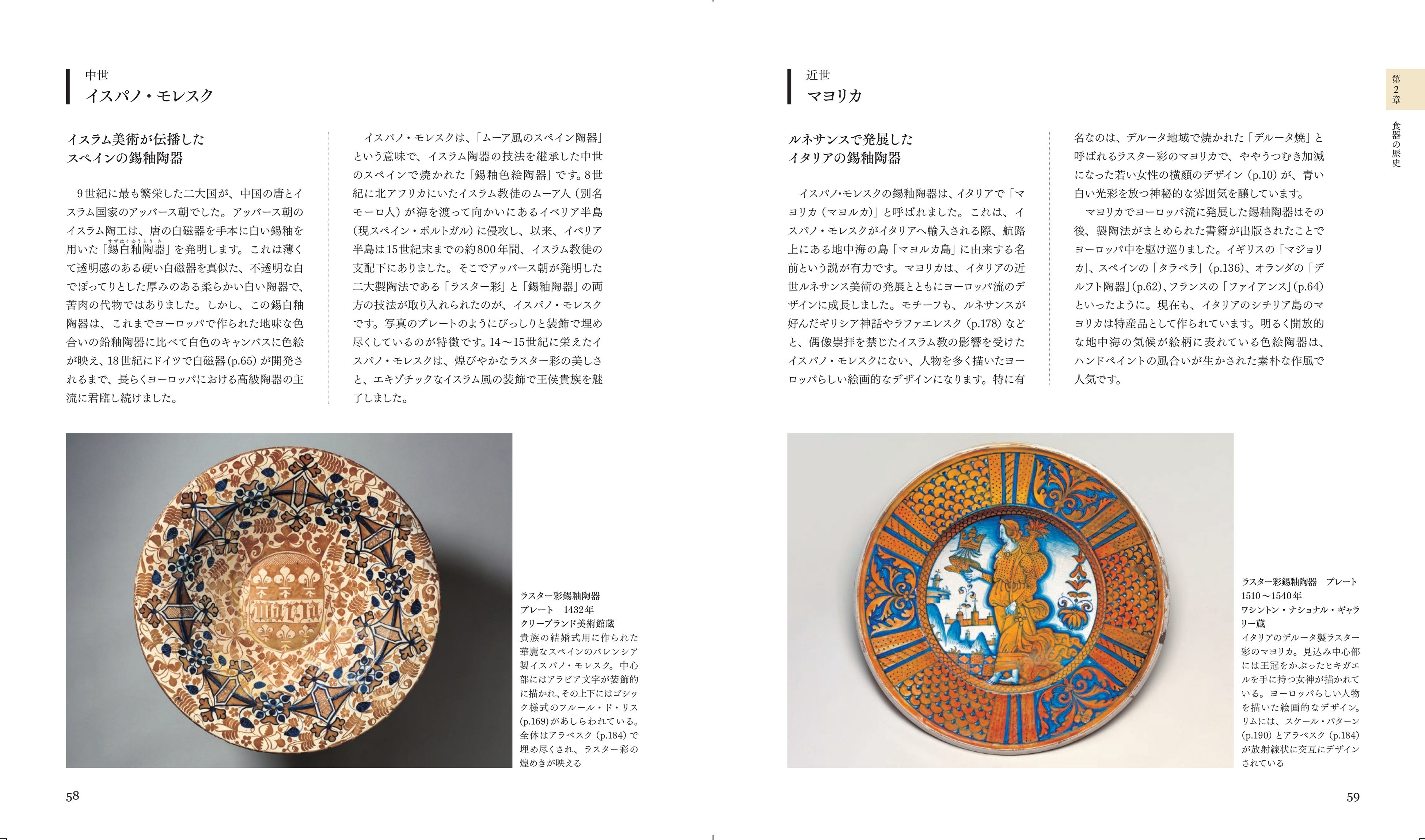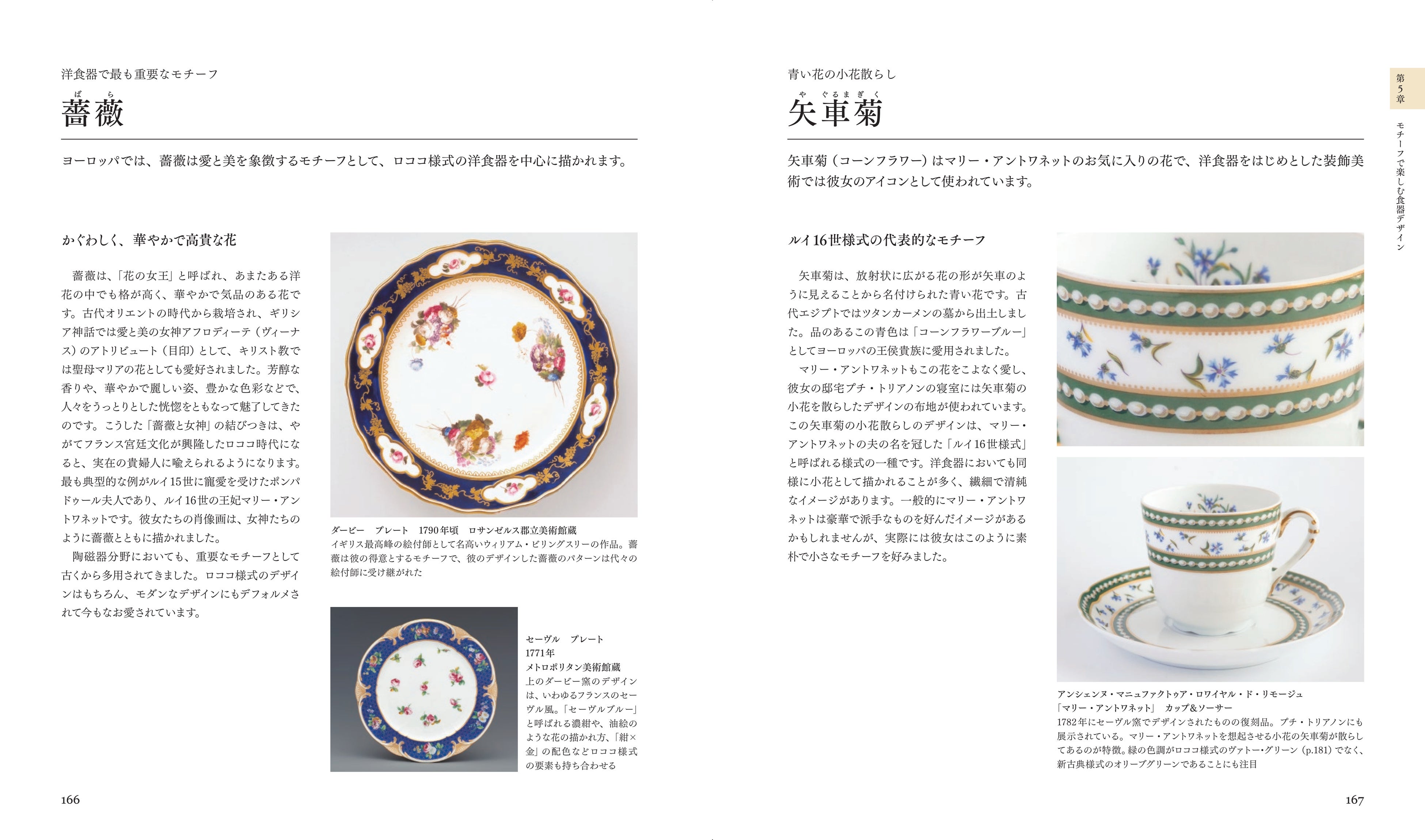そこで、本書では各ブランドの強みや特徴、他との違いなどを、どの食器本よりもわかりやすく解説してある点が特徴です。これは、世界の食器の歴史や日本のやきもの史も同様で、歴史の転換期となった重要なポイントをおさえてあり、これ一冊で洋食器、和食器の歴史のあらましがビジュアルを見ながら総覧することができます。食器のキャプションでは、見どころや鑑賞ポイントも簡潔に解説しているため、購入や美術鑑賞の助けにもなります。