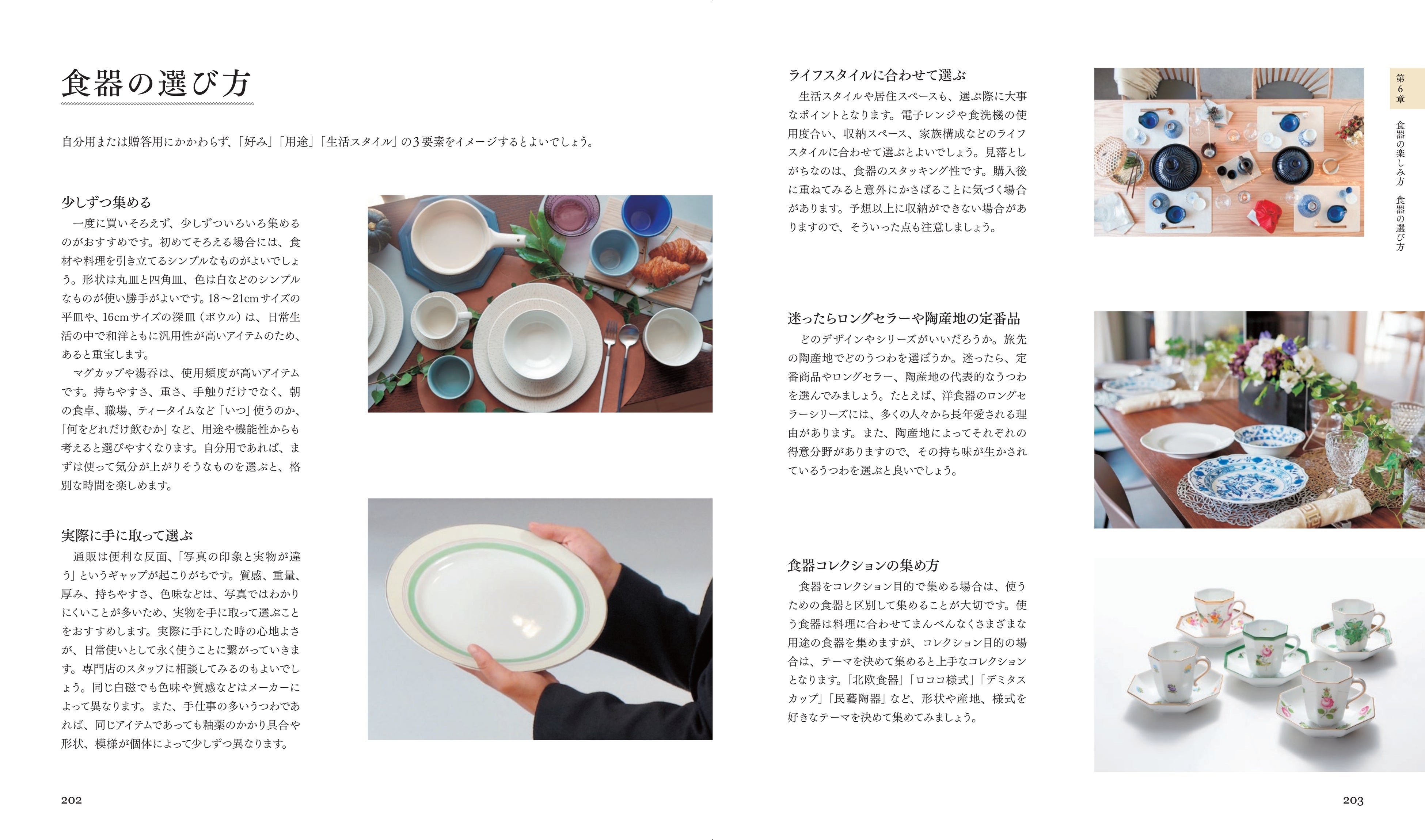 洋食器、和食器、それぞれのルールや価値観の違い、料理との組み合わせ方を和洋の食器で比較しながら解説しています。購入のポイント、お手入れや収納法など、プロ目線ならではのコツも紹介。