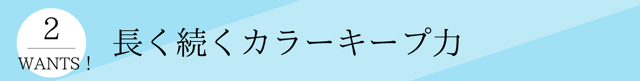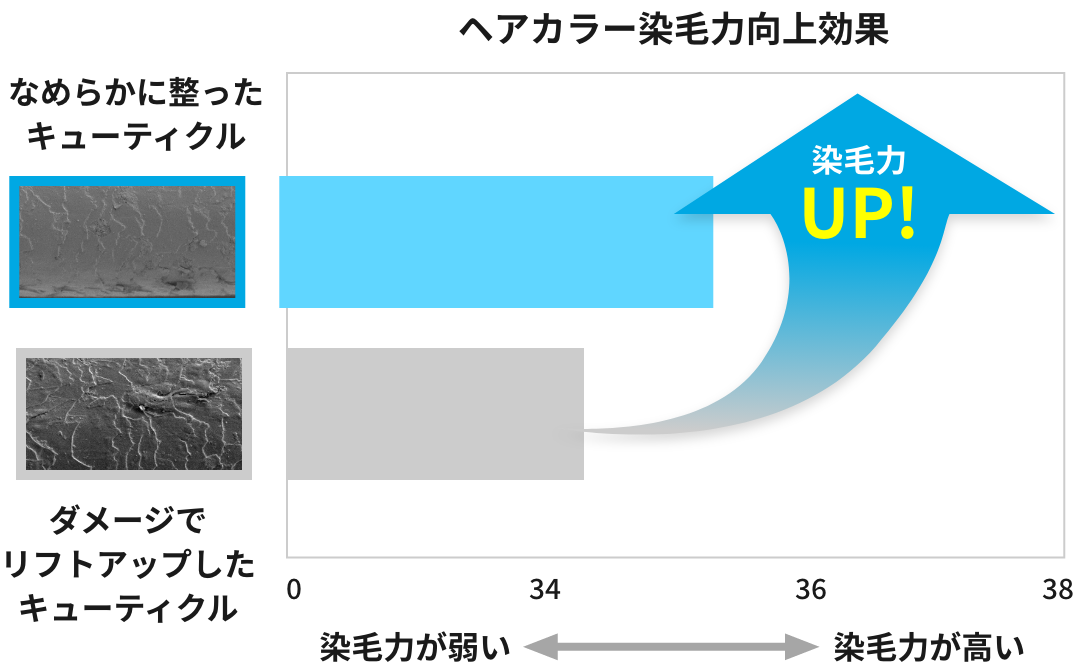 美しくカラーリングした髪色を長くキープさせるため『ハイブリッドポリマー※2』を配合。髪の最表面をハイブリッドポリマーでコーティングすることで開いたキューティクルを整え、発色や艶はもちろん、褪色を抑えます。
