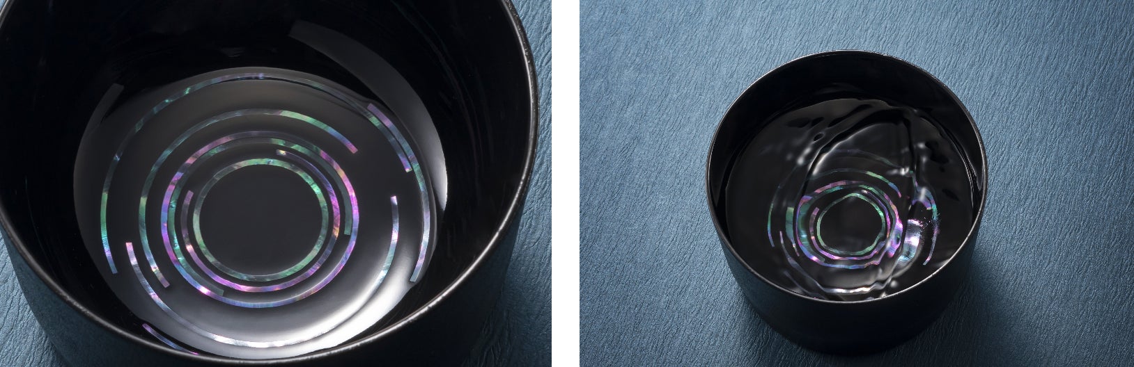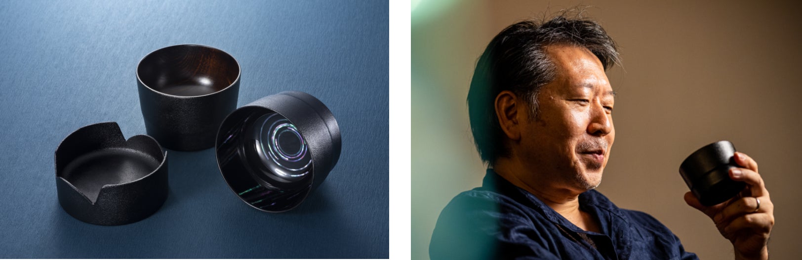 レンズフードを漆器の技で再現。さらに螺鈿(らでん)模様でレンズの煌めきまでも表現しました。流れゆく時間を豊かにする3つの器です。卓越した木工技術でレンズフードの造形を追求。漆塗りの技法でシボ風塗装の質感もリアルに再現しました。さらに、螺鈿の輝きでレンズの美しさも表現。カメラ愛好家の時間をちょっと贅沢に、そして豊かにしてくれる器です。