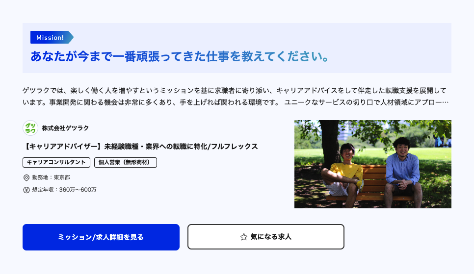 またミッションの設定や提案も、Q転職のコンサルタントが無料でサポートしております。
