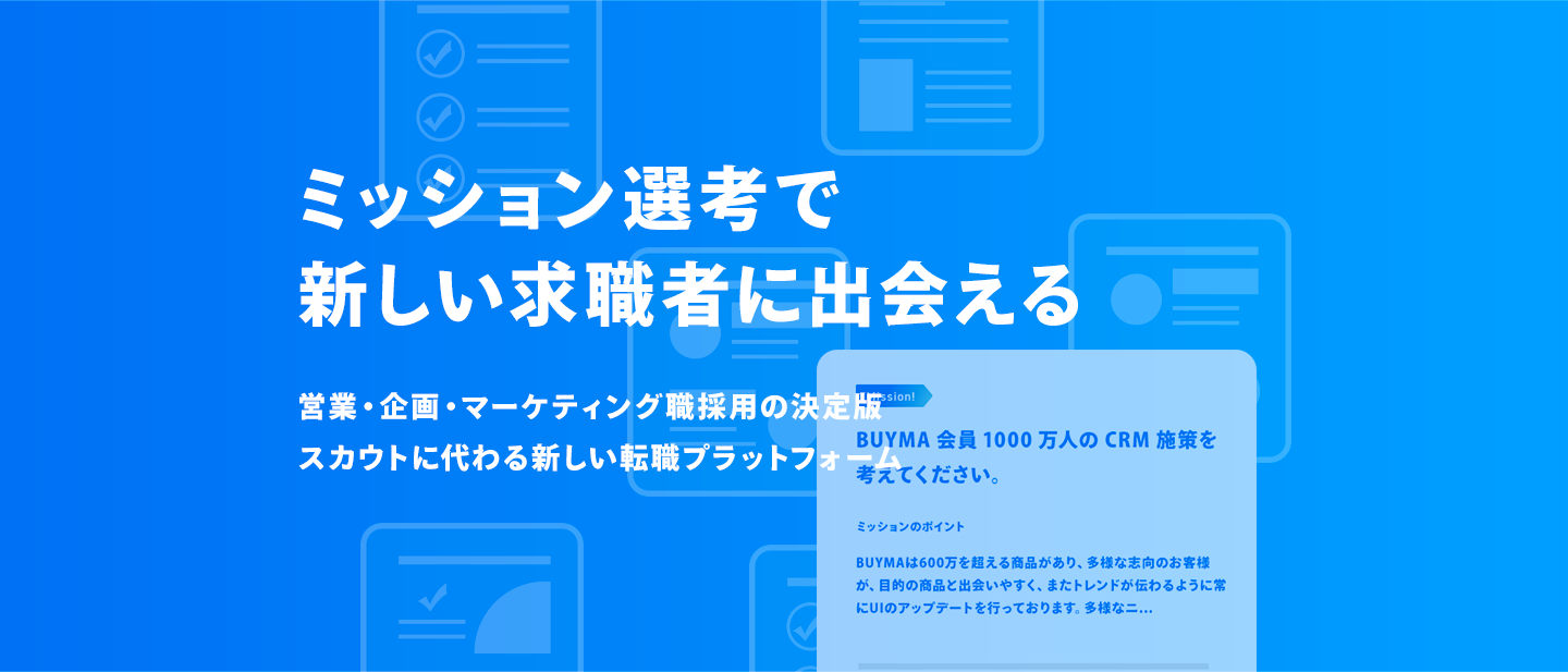 Q転職は、企業が課す事業課題や選考課題(ミッション)に取り組み、そのアウトプットを元に選考を進めるミッション選考型の転職サービスです。