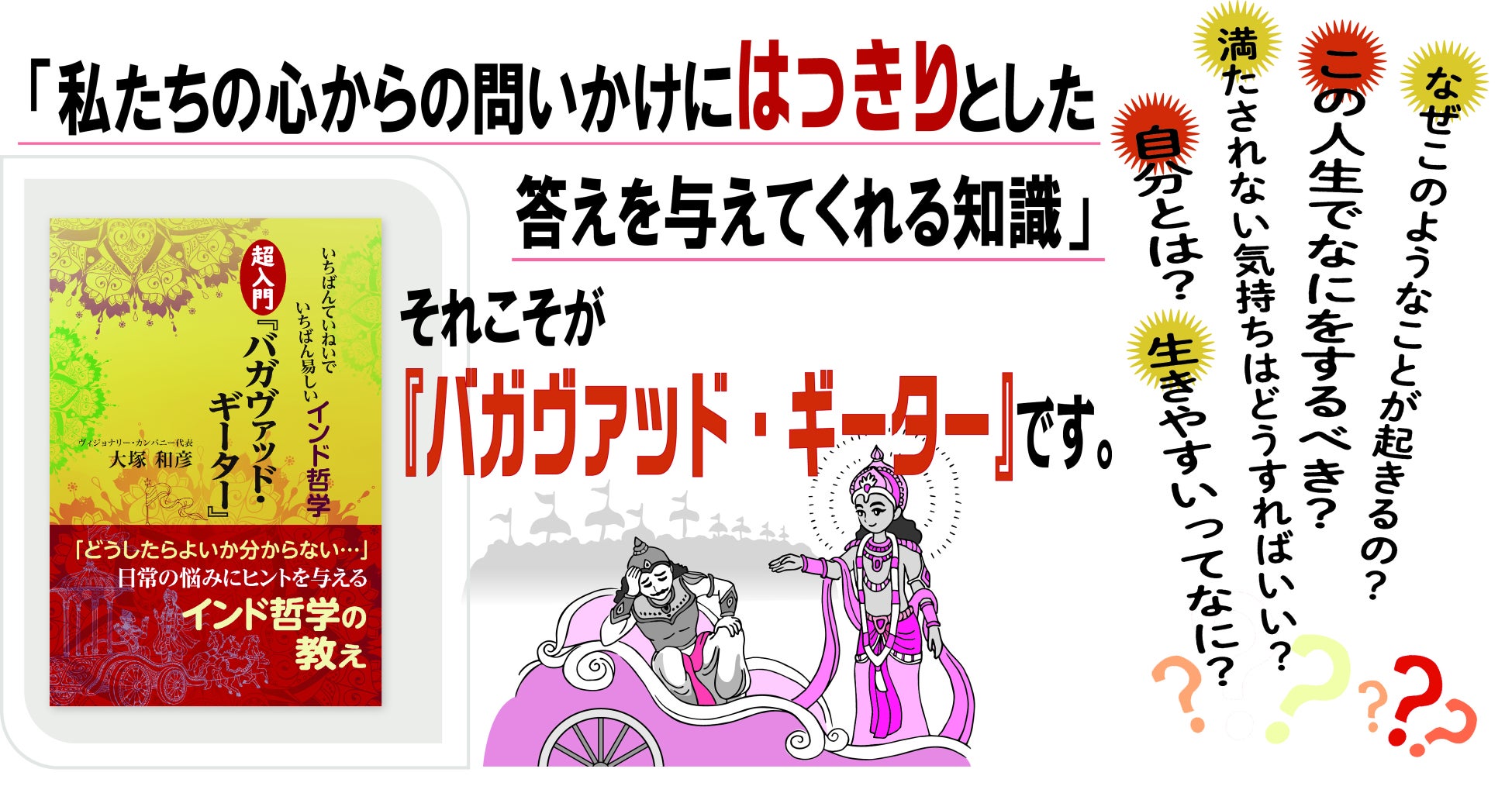 『いちばんていねいでいちばん易しいインド哲学 超入門『バガヴァッド・ギーター』』の発刊(4月12日)を記念し、著者の大塚和彦さん(株式会社ヴィジョナリー・カンパニー代表取締役)によるトークショーを開催いたします。 難解でとっつきにくいインド哲学について、「インド哲学とはそもそも何?」、「日常生活でどのように役立つの?」という点に絞って、初めての方にも分かりやすくお話しいたします。