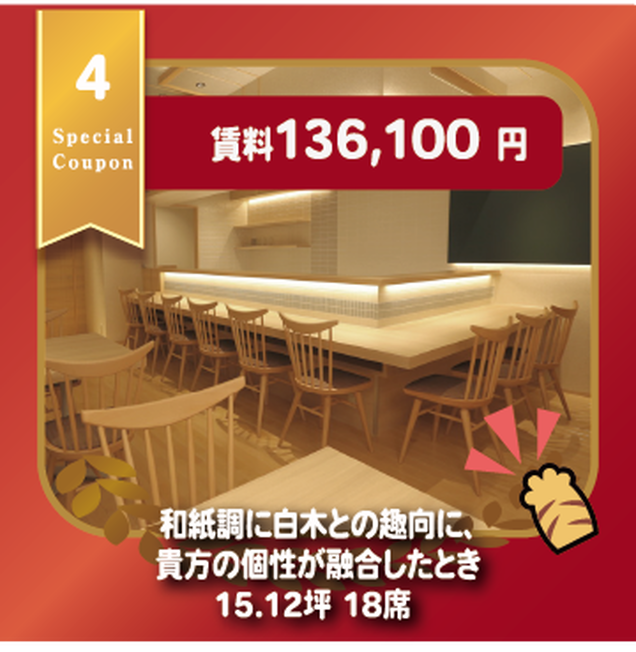 独立開業を志す貴方に、4区画限定で新たな賃料を期間を定めてご案内します。