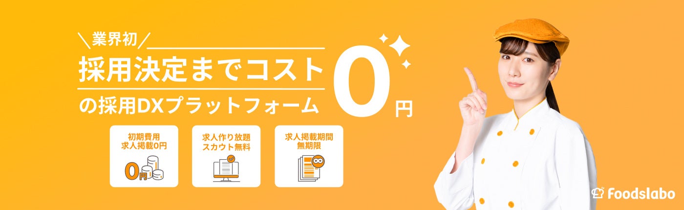 事前受付して頂いた企業様に限り、会社・ブランド情報と1求人までの入稿をFoodsLaboが代行致します。求人掲載をご希望の企業様は是非お申し込み下さい。