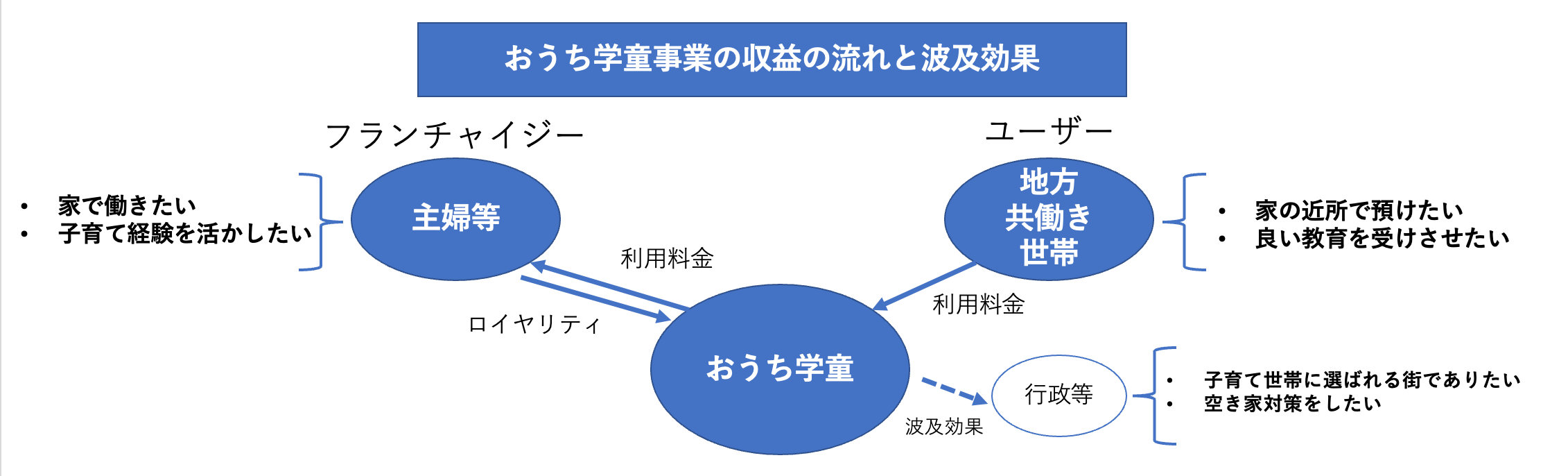 家にいながらにして働きたいと考えている主婦・主夫の方が、余裕のある日に自宅で民間学童保育を運営する仕組み・システムを提供します。