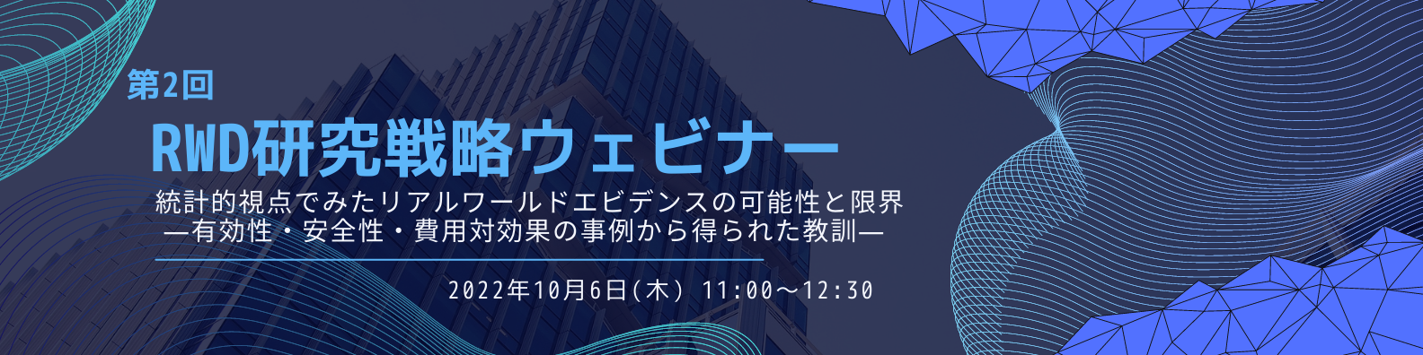 【2022/10/06開催】『第2回RWD研究戦略ウェビナー 統計的視点でみたリアルワールドエビデンスの可能性と限界 ―有効性・安全性・費用対効果の事例から得られた教訓―』