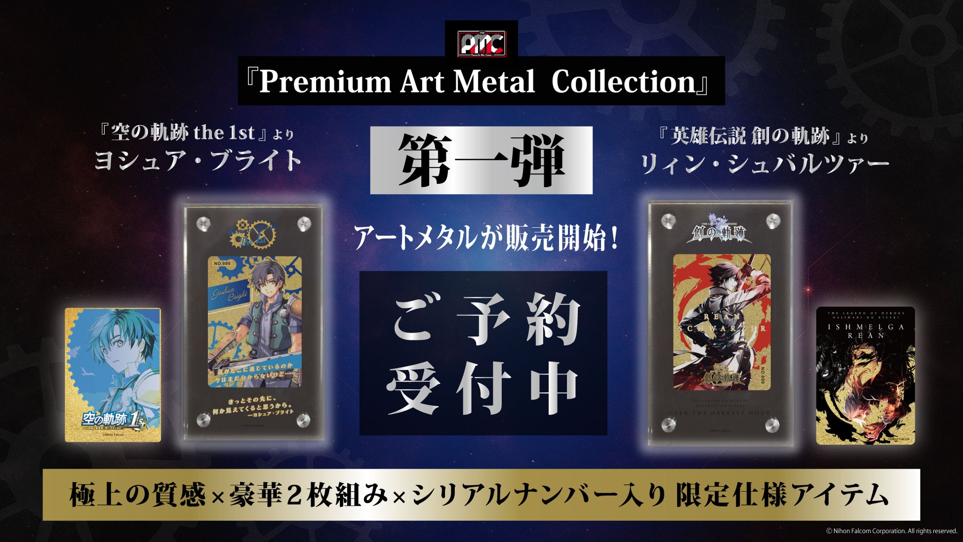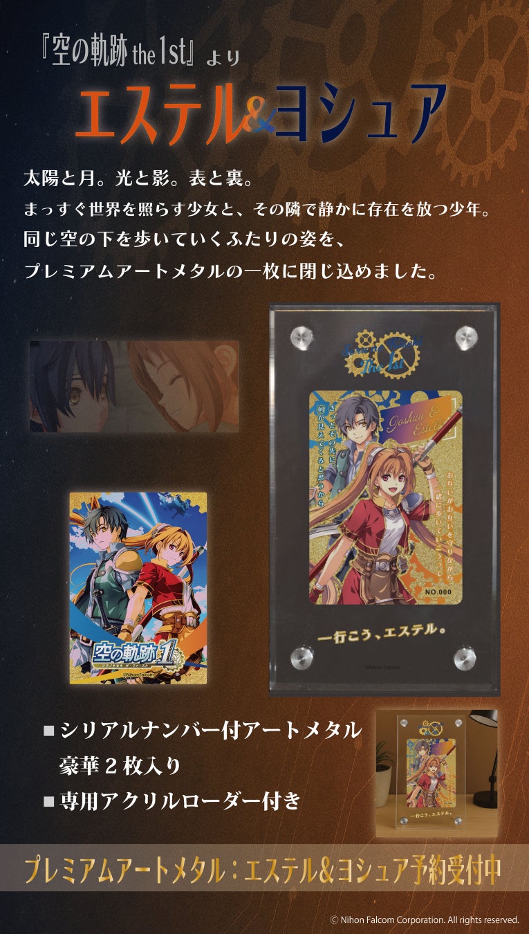 『英雄伝説 軌跡シリーズ』より、第一弾としてヨシュア・ブライト、リィン・シュバルツァーのアートメタルの予約販売を開始したことをお知らせいたします。