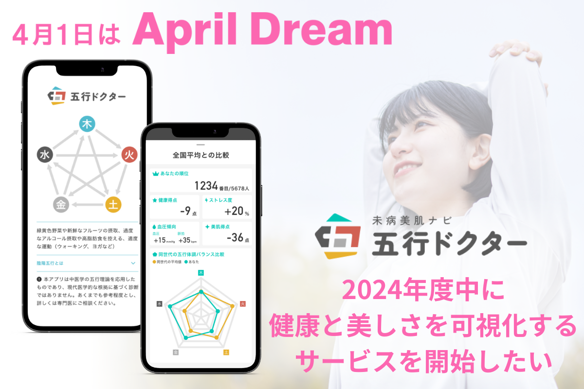 代表取締役 遠山直也、以下LDS社)が開発する、健康状態を可視化する革新的なサービス「五行ドクター」は、4月1日を夢を発信する日にしようとするApril Dreamに賛同しています。このプレスリリースは「LDS」の夢です。