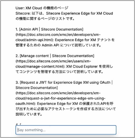 Sitecore Searchと生成AIを組み合わせることにより、生成AIの学習範囲外まで検索範囲を拡張し、より正確な情報を返すことができます。。