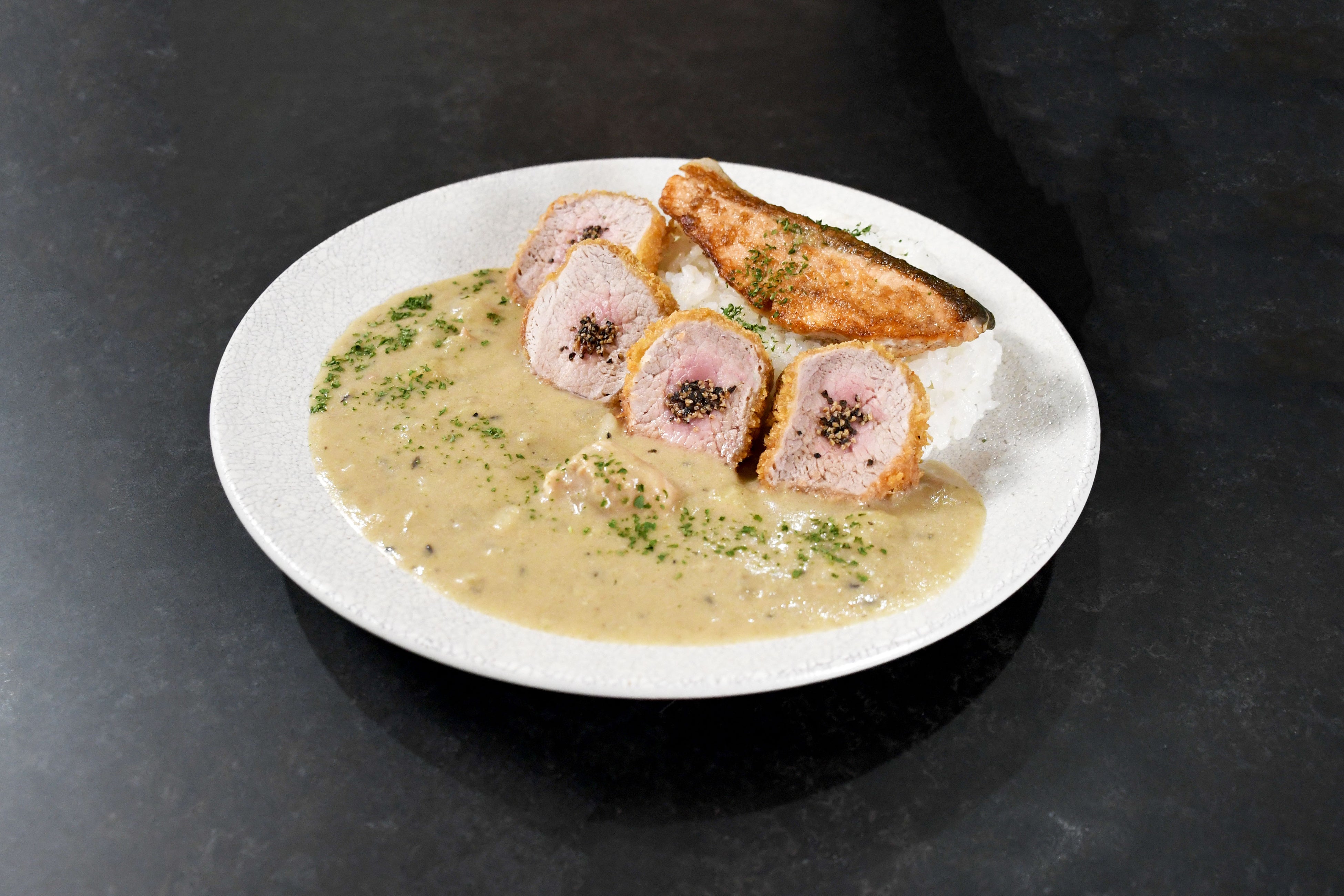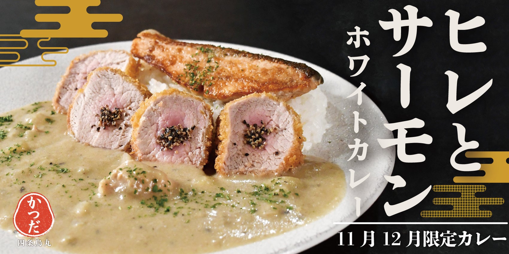 「ヒレとカレー 京都かつだ」期間限定メニュー「ヒレカツとサーモンムニエルのホワイトカレー」を11月12月限定で販売。