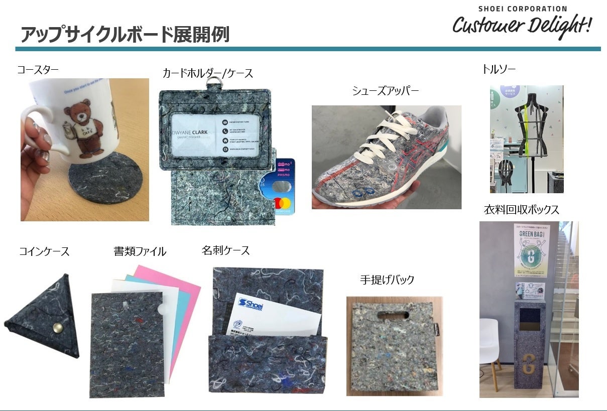 ショーエイコーポレーションの「アップサイクルボード(※)」とは、 繊維廃棄物を新たな素材に変化させ、 プロダクト化して再利用することで、 ごみゼロに少しでも貢献するという考え方のリサイクルです。