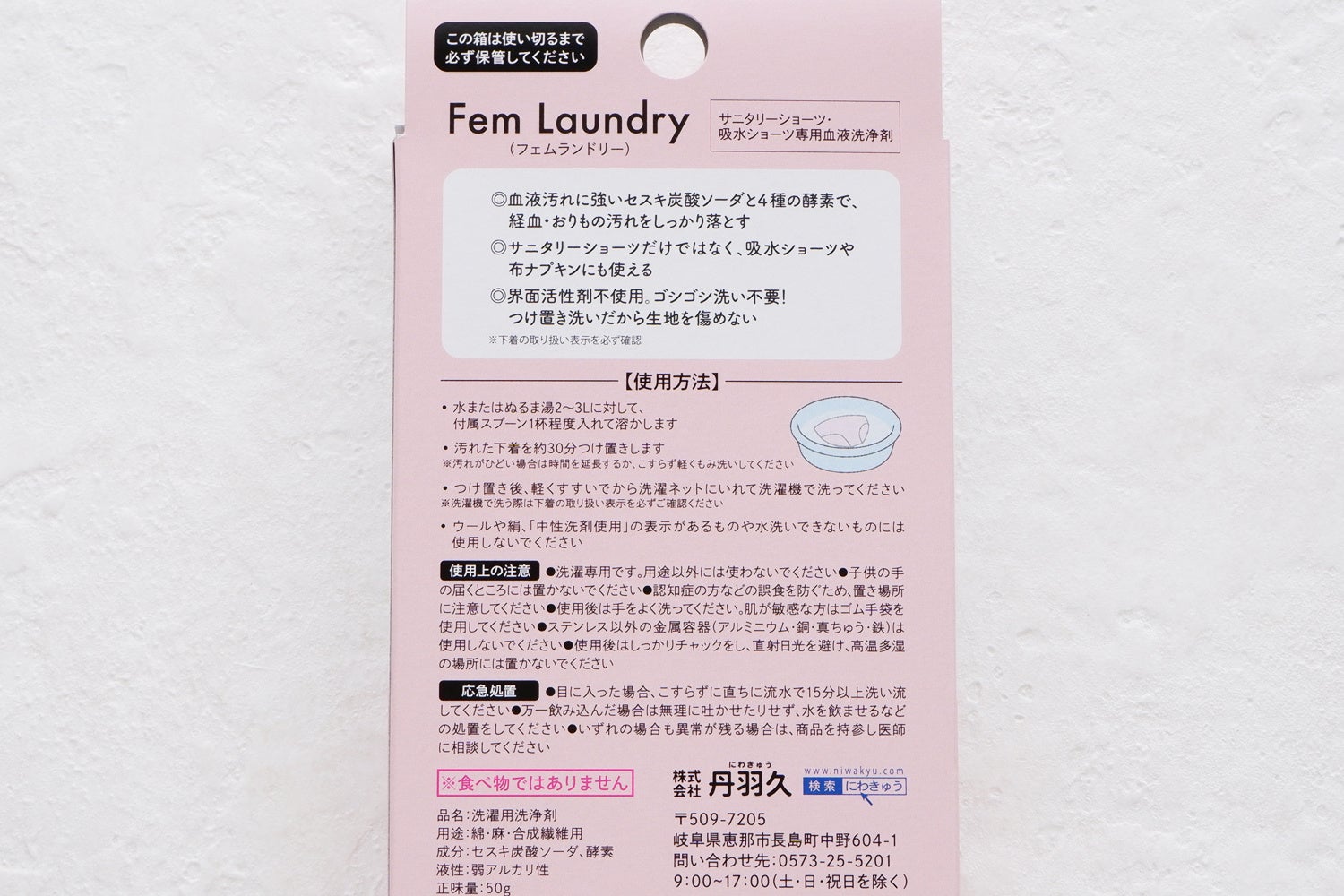 商品名 :サニタリーショーツ・吸水ショーツ専用血液洗浄剤 Fem Laundry