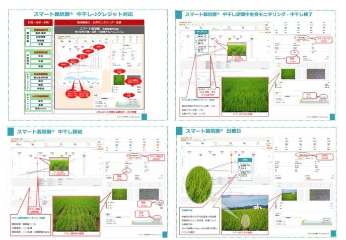 水稲栽培に関しては、これまで、農林水産省の全国1,000ヶ所を対象とした大規模水稲栽培実証プロジェクト、スマート農業推進実証プロジェクト、農業の国家戦略特区である新潟市との連携協定による大規模水稲プロジェクトなど数多くの水稲栽培における研究・開発・実証を長年重ねてまいりました。また、農林水産省「スマート水田普及研究開発プラットフォーム」事務局として全国43都道府県の普及組織等と弊社水田センサーシステムを活用した実証を重ね、全国各地で気候変動・環境配慮型の「スマート栽培暦®」の社会実装が進んでおります。
