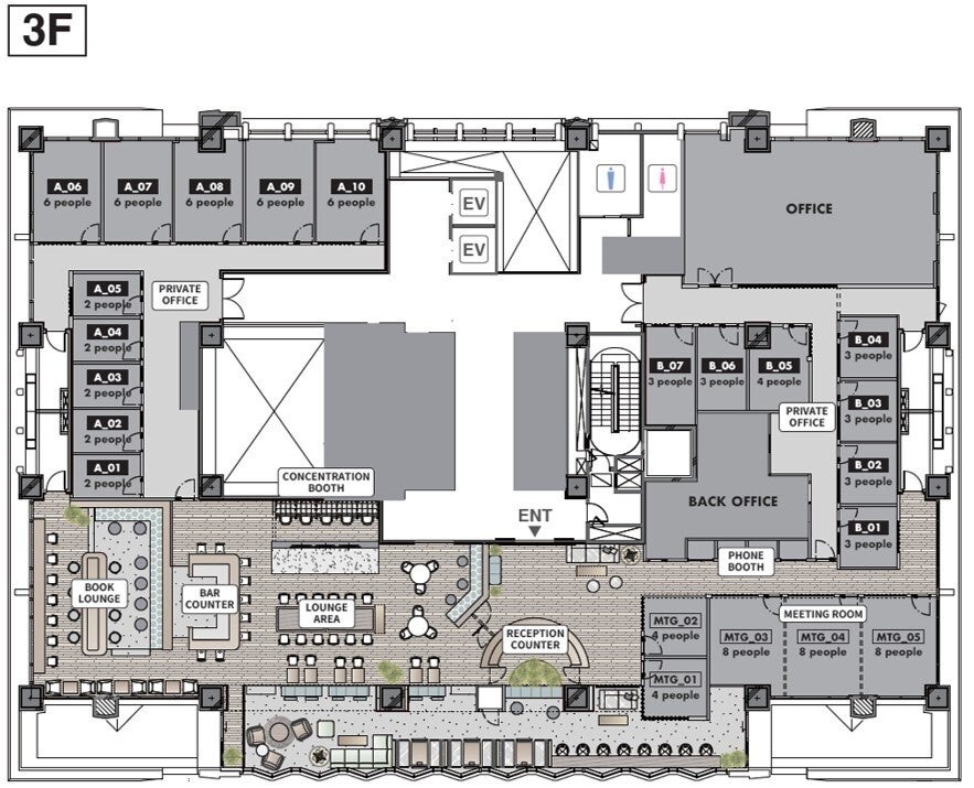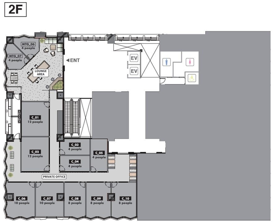 ・個室オフィスの専属利用(プライベートオフィス):26室(2~12名用)