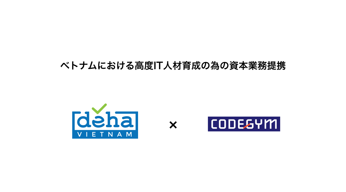 高度IT人材調達サービス「チョータツ」を運営する株式会社DEHA SOLUTIONS(本社:東京都中央区、代表取締役:ファム ミン フン)は3月11日付にて、同グループのDEHA VIETNAM JOINT STOCK COMPANY(本社:ベトナムハノイ、CEO:ファム ミン フン、以下、DEHA)が、IT人材育成サービスを運営するCODEGYM VIETNAM JOINT STOCK COMPANY(以下、CodeGym)と資本業務提携したことをお知らせ致します。