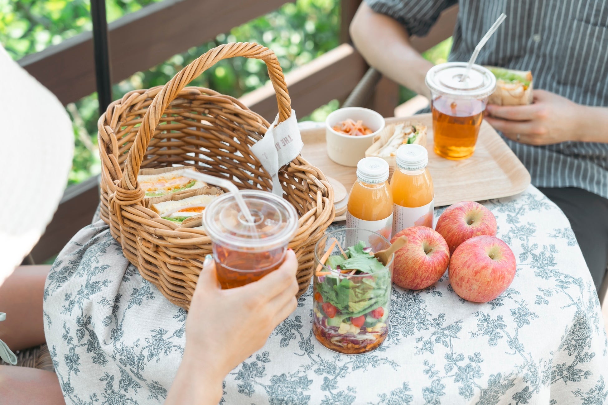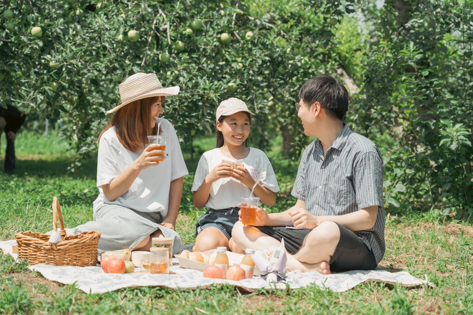 併設するカフェで受付・ご注文後、りんご畑のお気に入りのスポットで特別なひとときをお過ごしいただけます。サンドイッチやフルーツサンド、季節のくだものなどを詰め込んだピクニックセットもご用意。レジャーシートや取り皿もお貸し出ししますので、手ぶらでお越しいただけます。